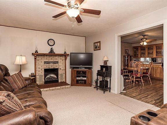 Country living close to town! Charming home in excellent location, lots of space and privacy while still close to town with easy highway access. Property is level with mature trees. Home has lots of space inside with two living areas and large eat-in kitchen. LVT flooring. Full basement under the house is large and provides a storm shelter as well as plenty of space for storage and other possibilities. RV parking and large workshop/storage building. The front porch is perfect for enjoying the wildlife and views of nearby Pea Ridge Military Park. 3 Bedrooms provide plenty of space. This home has endless possibilities and a lot to offer!