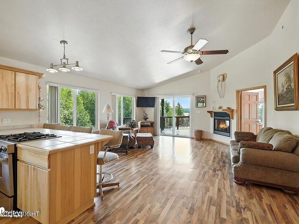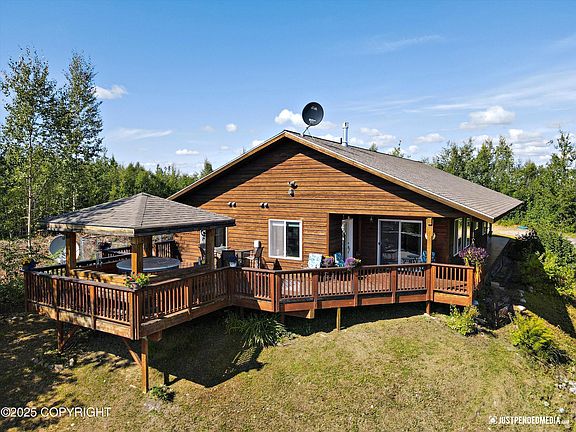 Inviting custom ranch home with big lake views, radiant in-floor heating throughout. Enjoy a large sunny deck with covered hot tub, RV parking with electric hook up, and plenty of space for Alaskan toys. Private setting near public lake access, secure fenced dog run, deep clean well, and insulated shed with power. Easily converted to ADA accessible - comfort and adventure await Custom hickory cabinets in kitchen. Oversized one car garage with built in shelving, two oversized carports. This home is built to last - Insulated quad lock foundation and 2x6 construction! Must see to appreciate the private setting and lake view!