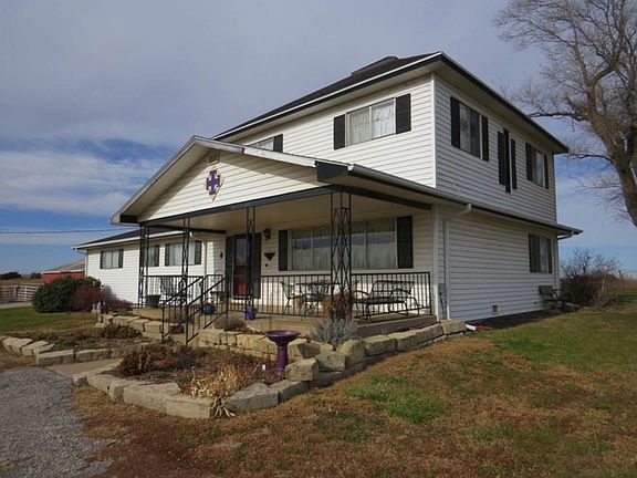 1595 17th Road, Washington, Kansas Country Acreage - 4 Acres with well kept 5 bedroom, 2 bathroom home. Very nice, well kept 5 bedroom, 2 bathroom farm house on 4 acres. The main floor has an open living room, dining room, and kitchen, and a large family room. There is also a large master bedroom and bathroom, a large laundry room, and a full bathroom. The second floor has 4 bedrooms. There is a partial basement. The home has central heating and air conditioning. Recent vinyl siding and roof. There is a large front porch. There is a good barn and corrals to the west of the house, and a small pasture to the north. This property is well located 1 1/2 miles west of Washington at the intersection of US-36 and Osage Road. 2017 Taxes: $1,276.74