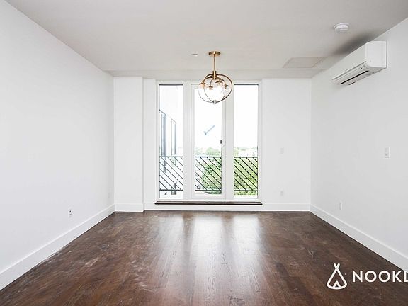 Video Showing Available 1 Bed / 1 Bath at 1595 Broadway - Unit: 7D in Bushwick, Brooklyn. All Pets Allowed. Nearby subway stations include: Halsey St (J). This new building is situated conveniently right next to the Gates J Train. The owners spared no expense to make these apartments perfect. This one bedroom has a balcony, and includes top of the line stainless steel appliances in the kitchen and bathroom, and has a ton of natural lighting. The bedroom is sizable and can fit a queen size bed. Enjoy access to the roof, bike storage, laundry in the building, secured entry, and a gym!