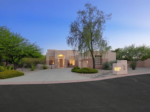 Beautiful Santa Fe home tucked away on a cul-de-sac lot located in the desirable Pueblo Casandra Community. HOA maintains the front yard combined with low maintenance back yard makes this a perfect ''Lock and Leave'' property for winter visitors. Community pool and spa are located steps away from the property. Open the front door and you are greeted with soaring 12' ceiling and large living room/great room. Cheerful, eat-in kitchen with views of the tranquil backyard. Extended laundry room with washer and dryer that stay with the property. Jack and Jill guest bath. Master bedroom has a private exit to the back yard. Back yard is a wonderful oasis to relax and watch the quail and humming b