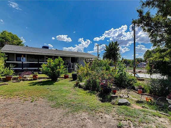 Cozy describes this property perfectly, inside and out. At 1,127 sqft the 3 bed 1 bath home is small but easy to care for and just right for a small family. the primary bedroom has a walk in closet that could be a 2nd bath. In the front, a vine covered gate opens to a winding pathway which leads up to a full length porch, perfect for enjoying a beverage and taking in the humming birds and flowers. A fence provides security for pets or children. a gazebo in the large backyard is complete with lights and outlets perfect for entertaining. The garden consists of 6 raised beds, 7 grape vines, pistachio and pomegranate trees. The Tuff shed is wired and excellent for tool storage and projects. 2 other outbuildings could serve as green houses and or storage. At .60 acre, there is plenty of room for outdoor activities. Small farm animals are ok here too! This home is superb for those who relish outdoor activities and quiet comfortable living.