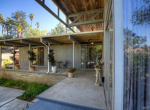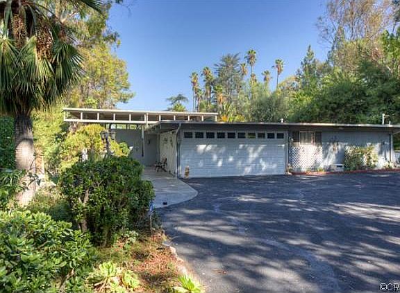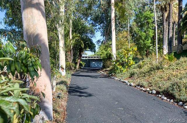 Tucked quietly away on a long private driveway sits a uniquely designed, single level, "Frank Lloyd Wright Inspired" Custom Home with walls of glass and a setting that will take you back in time. What an incredible opportunity to own an treasure this unique home that is located on over a 1/2 acre lot! Tranquil gardens and fountains greet you as you are welcomed into this home. The formal living room and dining room feature a classic freestanding woodburning fireplace, wood ceilings and cross beams that draw your eye up to the alluring design concepts of the rooms. A well thought out open floor plan features a modern kitchen that opens to a great room, separate bar and also features 3 very generously sized bedrooms each with built in closets reminiscent to the style of this home. Marble Flooring and decorative mosaic tiles in the entry, neutral carpeting in the bedrooms and living and dining rooms. Ceiling fans and central air conditioning. The large walls of glass help to bring the outside in as this home offers the utmost in privacy. There is an above ground spa at the rear of this home and plenty of grass and patio areas. Surrounded by custom homes, this home does not have HOA or Mello Roos.