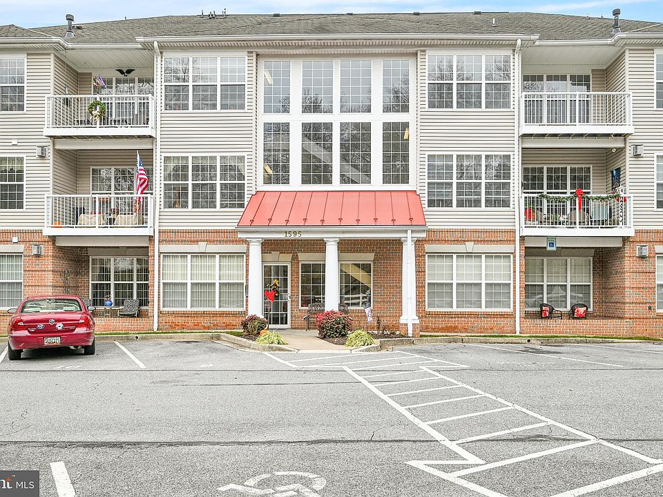 Welcome to Homeland in Eldersburg - An age restricted 55+ Condominium Community. This is a 3rd floor condominium in move-in condition with a beautiful view from the rear balcony. 9' ceilings throughout and warm natural gas heating and central air conditioning. The large living room has a cozy gas fireplace and an atrium door leading to a beautiful balcony. The kitchen has beautiful oak hardwood floors-lots of cabinetry with an upgraded countertop-refrigerator-dishwasher-disposal-built-in microwave oven-electric stove and self cleaning oven. Has a nice size laundry/utility room with a stackable washer and dryer. The large primary bedroom has crown molding, a large walk-in closet with lots of shelving and a full bathroom with ceramic tile floors and a walk-in shower with ceramic tile walls. No need for steps as the condo has level access from the parking area to the lobby with an elevator to 3rd floor. Has a separate storage unit for excess storage. There is a community party room in bldg. #1597 that can be used for special occasions, gatherings and entertainment. Homeland Drive ends in a cul-de-sac with minimum traffic exposure. Conveniently located within 1 mile of many restaurants, shopping, grocery stores, churches, Walmart, Kohl's and the local library. This beautiful condominium is vacant and can settle quickly, if needed.
