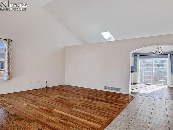 WELCOME HOME! This stunning property has 4 bedrooms, 3 bathrooms, and 2-car garage w/an abundance of space for entertaining, a flowing floor plan, and is ideally located just minutes from Fort Carson, trails, shopping, schools, and more! Enjoy crisp mornings on your cozy porch swing relishing your beautifully maintained cul-de-sac w/stunning mountain views. Step into your open floor plan, adorned w/hardwood floors and bathed in natural light courtesy of your large windows, skylights, and vaulted ceilings. Create memories in your elegant kitchen w/large island, plenty of cabinetry/storage, sizable pantry, & S/S appliances. Walking out from the dining area, you will be captivated by the mountain views while entertaining in your fully fenced, landscaped yard w/freshly poured & expanded concrete patio. Escape your day-to-day in your tranquil master suite w/en-suite bath & deep garden tub. Another bedroom & a full bath are also conveniently situated on the main level. Also on the main level, you’ll find your laundry room w/storage shelving. The basement offers endless possibilities for customization. The lower level's potential as a rental space, w/second possible kitchenette, pantry/closet, & other amenities, presents an opportunity for extra income or guest privacy. This property also boasts the potential for a second master suite. Whether for guests or multi-generational living, the flexibility adds an extra layer of allure to this already remarkable home. Additional amenities: New carpet & LVP, interior paint, A/C, smart home security, upgraded Quantum internet, surround speakers, window coverings, ceiling fans, privacy fencing, Orbit system, front porch water, fresh concrete in driveway & patio, upgraded fixtures, Ring doorbell, & much more! This home is a lifestyle upgrade & true masterpiece in the heart of Colorado. From the moment you arrive, you'll be enthralled by the breathtaking views that surround you, showcasing the natural beauty of Colorado Springs.