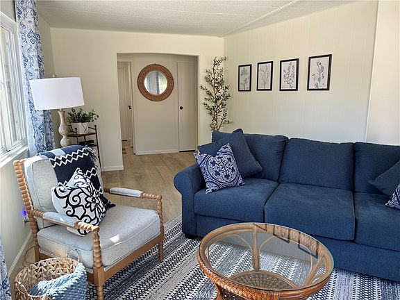 DAISY HILL ESTATES a resident owned park with an occupancy fee of just $200.55/mo. Updated interior including all new flooring. Roof is in great shape, a new water heater has been installed. Cheerful living room, dining room, & laundry room. Primary bedroom has walk-in closet and attached bathroom with shower. Second bedroom with full size closet and a bathroom with tub/shower. Forced air gas heating and dual pane vinyl windows. Enclosed sun room off the primary bedroom is set up as a nice bonus room with built in storage, new windows, and access to the private front patio. Special feature is the gated private large front courtyard patio with new concrete. The carport is two cars deep and leads to a back yard and a storage shed. Good location within the Park. Park features a clubhouse, combo swim spa/hot tub, dog park, gym, laundry room, guest parking and community garden. Access to nature walking trails at the back of the park.