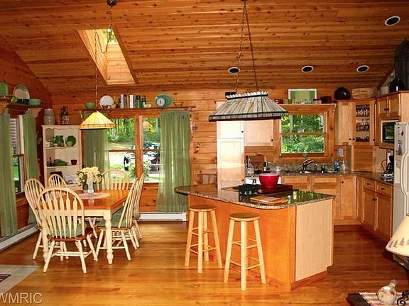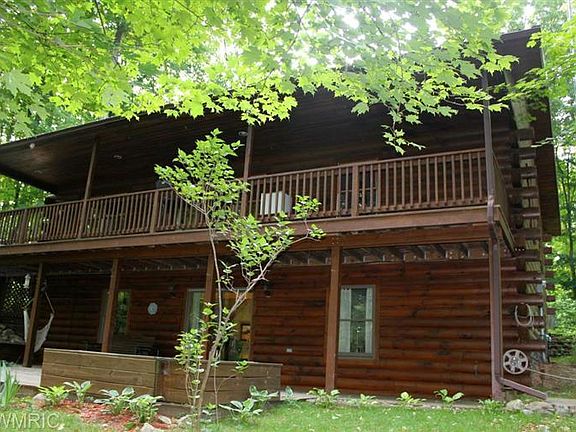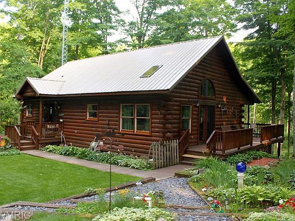Custom built log home on 43 wooded acres. Home features include over 2400 square foot of living area, full finished walkout lower level vaulted ceilings, fieldstone fireplace, Hardwood & ceramic tile floors, wrap around porch, beautiful landscaping, 2 car garage and 36 x 40 pole barn for storage. Very private setting and excellent deer and turkey hunting.