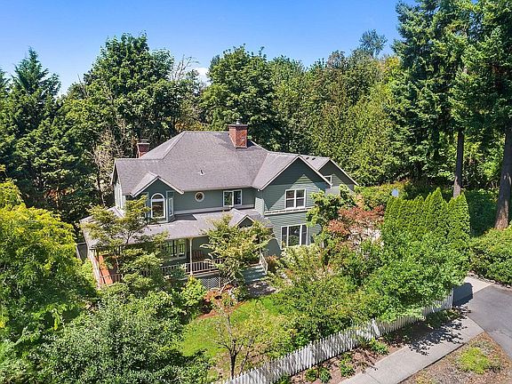 Farm houe style, excellent floor plan,wrap around porch in front with old cedar floor,2 level deck in back. House is very cosy.Downstairs family room, dining room, kitchen with lovely nook overlooking gorgeous back yard, and wonderful library/music room with built in floor to ceiling cherry book shelves and cabinets. Basement is fully finished, 900sq feet, with floor to ceiling paneled unstained mahogany walls and billiard room style carpet, wine cellar added in 2012. Second floor , office/studio, laundry room, nursery room, 4 bedrooms. Master bathroom and second bathroom remodeled in 2012 with natual stone, snd ceramic tile. Neighborhood Description This house situated in a group with 5 other houses (Springside) all having from1/4 acre to 3 acres of land with strict convenent to preserve the flora of the natural environment. We have over 1/4 of an acre on a a park like setting with beautiful private views into greenery. Lot's and lot's of light in a house with 36 windows! House entrance faces east, lovely deck in back west, lots of south facing windows, all of which are double paned with wood frames. There is a lovely desert garden in the driveway and shade garden next to the deck. We have a cherry tree, an apple tree, a plum tree, and a pear tree, all bearing fruit year after year...The house in a 10 minute drive to downtown Portland yet has a feeling of being out in the country...
