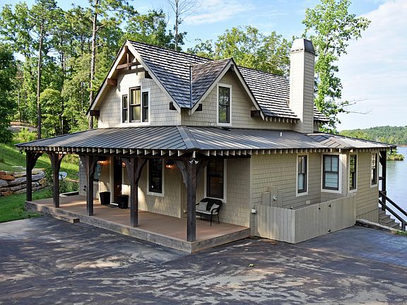 Many of residential designer Mitch Ginn's plans have been featured throughout the years in Southern Living Magazine & Southern Living House Plans Magazine. We can see why! This ''Cove Cottage'' plan was loaded with charm, and perfect in so many ways with 2 spacious bedrooms and baths on each floor, an extra day room/bunk room on the main level, and an architectually delightful loft overlooking the main level greatroom. The lower level offers an additional greatroom for guests, and a well-appointed kitchen. The wide lakeside porches are ideal for entertaining and relaxing. The lot offers a flat lawn at the lakeside, few steps from home to water, gorgeous long-range, eastern water views, and good water depth at the dock. Ridge residents enjoy full use of The Ridge amenities including The