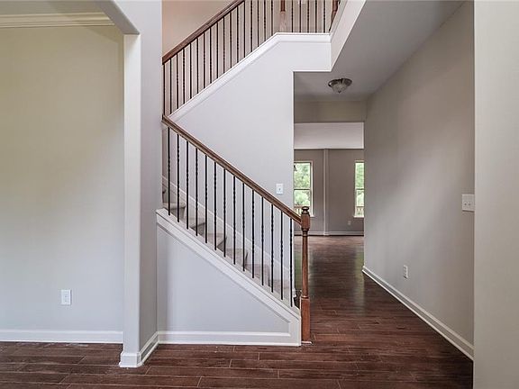 Beautiful 2012 build in Cumming, Georgia that is move-in ready, updated and in a fantastic location. 1595 Parkside Village Drive sits in a small cul de sac a few miles from Downtown Cumming, and its craftsman exterior oozes curb appeal. Rocking chair covered front porch leads you inside to the two story foyer with views into the formal dining room and grand staircase. Lovely LVP floors throughout the main floor make it open, inviting and the light shines in every room. Formal dining room can easily accommodate 12 and connects to the kitchen. This updated kitchen with stainless steel appliances, granite countertops and stained cabinets overlooks the massive fireside family room. With a kitchen island, tons of storage, and two door pantry the kitchen is truly the heart of the home. The Fireside family room includes a full wall of windows overlooking the private deck and wall of trees for complete privacy. Full bedroom and bathroom on the main is an added bonus and would make a great guest room, office or bonus room. Upstairs includes a grand master retreat with tray ceilings, walk in closet and double vanity bathroom. Master bath is incredibly extensive with a separate shower and tub, storage and privacy. Two more well sized bedrooms make up the second floor long with an upstairs laundry room for ease. Entire downstairs was recently repainted Accessible Beige, NEW carpet installed August 6th and the deck was re-stained for your convenience and enjoyment. Located 4 minutes from Downtown Cumming, 12 minutes to Mary Alice Beach and access to Lake Lanier. Plenty of shopping, restaurants and grocery stores, like Costco, Forsyth public library are all down the road. Enjoy the luxuries of life at 1595 Parkside Village Drive.