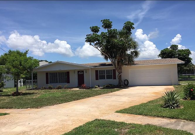 Recently painted inside and out, kitchen and bathrooms updated, bonus room/study with built-in floor to ceiling bookcases, 2 car garage, fenced back yard, 135 ft seawall with small dock but plenty of room for a boat lift, large screened porch, vertical blinds, gas (heat, dryer, and stove), fenced back yard, sprinklers on well with new controller, new garage door, electric panel updated, original terrazzo floors and closet doors with some imperfections.
