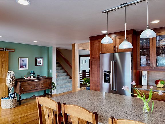 Come home to this touchless property in the coveted Upper East, privacy and mountain views boast this lovely property. This spacious three level home features 5 bedrooms, 4 and half baths with the newly remodeled master suite featuring a large custom walk-in closet and fully updated bathroom with a steam shower. The heart of the home is the chefs kitchen with high quality appliances and solid surface countertops. The gourmet kitchen extends to a picturesque newly remodeled Trex deck setting that offers unique features for BBQing year-round. The grand lofted third floor offers open concept with lots of natural light through skylights and large windows. The living and bedroom spaces are thoughtfully laid out, each including their own bathroom, ensuring a seamless flow throughout. (see supplemental remarks) This home has so many special touches that create a warm and welcoming environment. In addition to having the convenience of being close to downtown and the hospital you have numerous accesses to Helena’s trail system right out your back door. The property is bordered on the south by public lands owned by the City of Helena. Truly a rare opportunity with an adjacent .313 acre city lot included with the sale for added space and privacy.