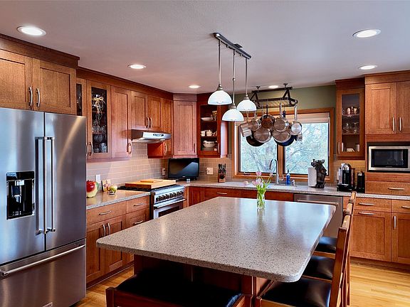 Noted updates: New appliances in kitchen, newly remodeled Trex deck, newly remodeled master suite and bathroom w/ steam shower and bidet, epoxy flooring and floating cabinets in garage, new water heater and boiler tank, and new air conditioning units.
