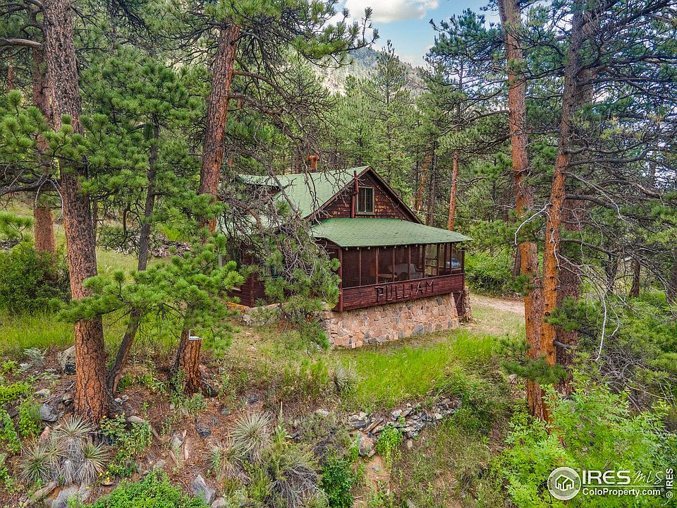 Step into a piece of history with this rustic seasonal cabin, lovingly kept in the family for generations and now ready to embrace a new family to create lasting memories. Nestled just 27 minutes away from the heart of Loveland and a mere 22 minutes from Estes Park, this cabin offers the perfect getaway. The serene setting welcomes you with the Big Thompson River flowing gently by. Picture yourself unwinding on the enclosed porch, where you can immerse yourself in the soothing sounds of the water and the embrace of nature just outside your door. The interior features a wood-burning fireplace in the living/dining room and wood flooring throughout. One bedroom on the main floor and two additional bedrooms nestled in the attic. That's not all! The property includes a bunkhouse with two more rooms, providing ample space for guests or extra storage. While this cabin already possesses timeless charm, it does require some fixing and updating. But fear not, it has excellent bones, leaving you with the exciting opportunity to transform it into your dream mountain retreat. The possibilities are endless, so schedule your viewing today and make this rustic gem yours to treasure for generations to come!