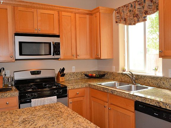 Charming two story home on corner lot. Open floor plan. Granite kitchen with island, SS gas appliances and maple cabinets. Master suite with tile floor, double sinks, vaulted ceiling and walk in closet. Upstairs laundry. Fenced yard. Located on a private street. Shopping and parks. NO HOA FEES