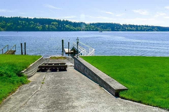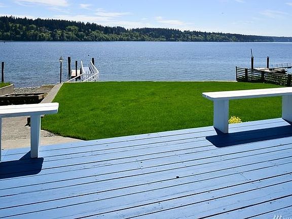 Beach house with boat ramp!! This two bedroom, one bath single family home has unique charm! Beautiful Bainbridge views - Front/back lawn with fenced yard - Bonus sun room off dining room on water side - Fireplace - All appliances included - Private beach access - Large wrap around deck - Three garages with shop/office area and additional restroom and more! **We do not accept comprehensive reusable tenant screening reports** Water/Sewer Included - 12 Mth Lease