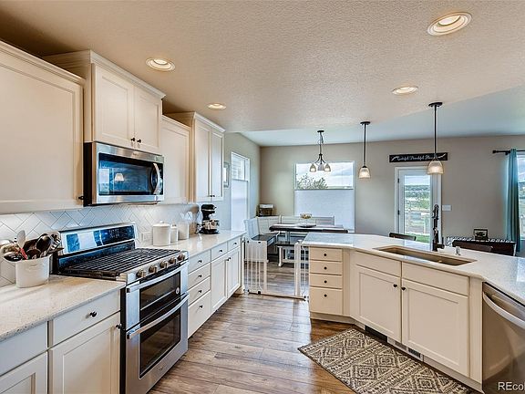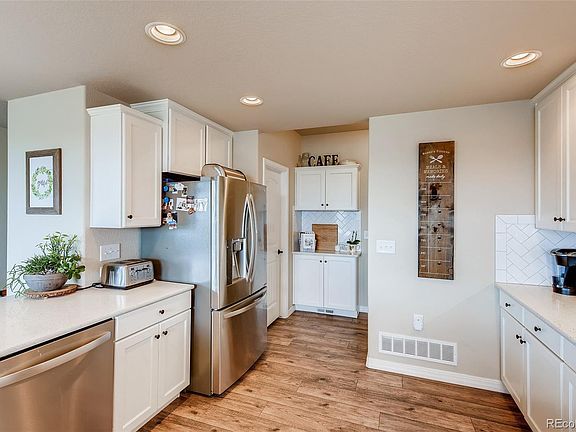 Almost Brand New in Forest Lake neighborhood with private lake access! Beautiful, 6 bedroom 4 bathroom home, with town views. The main floor has high end luxury vinyl floors throughout. The beautiful kitchen has white cabinets with soft close, quartz counters, updated backsplash, huge pantry, and a great drop zone off of the garage. The family room is inviting with a custom stone fireplace. The main floor has an office, separate from the family room. Upstairs has 4 good sized bedrooms, & loft (with built-in desks, perfect for distance learning). Master bedroom is large with Monument views, high end bathroom finishes, a huge shower with double shower heads & closet. The basement is also finished with a large rec room, two bedrooms & bath. All this, plus the garage is extra deep for storage. Large patio for entertaining no neighbors behind, on a cul-de-sac. More value, 2 story is more rare for the area. Beautiful inside and out.