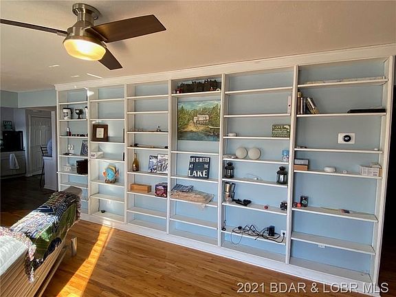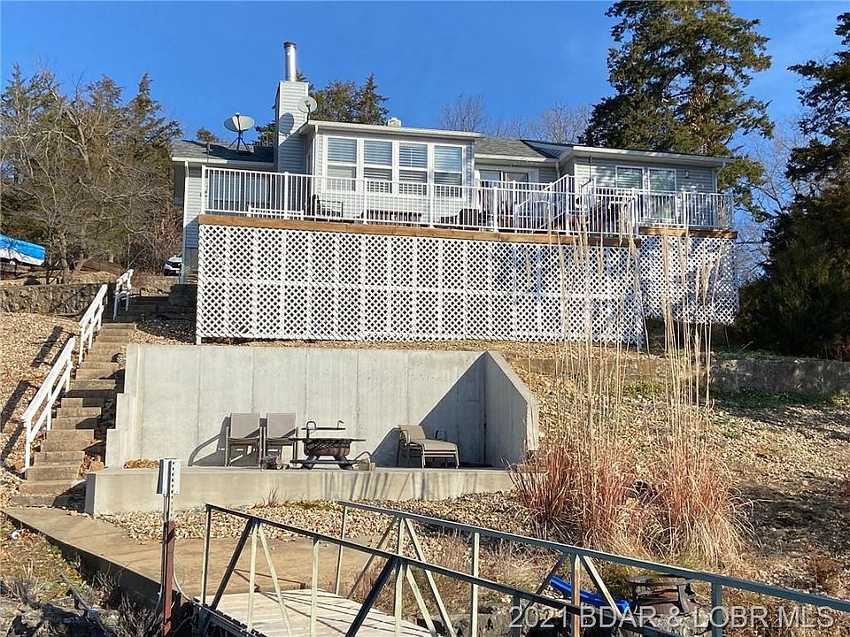 Darling cottage with original hardwoods in the spacious living room and white plantation shutters on the windows to enhance the look and feel. You will love the many updates this home has had in the last few years including an updated kitchen with new appliances and laminate flooring and also updated baths- one with a tub/shower combo and one with a walk in shower. Located in a large cove on the Gravois Arm with beautiful views the outdoor space is tremendous. Newer two tiered decking with white metal handrails and also a great patio down by the waters edge (permitted). The lot has a natural stone seawall to hold the 2 well concrete dock complete with wet steps. Ample parking and a detached garage complete the package. Seller selling as is.