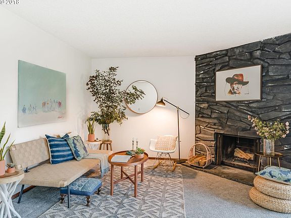 Why rent when you can own?! Beautiful 2-bedroom condo with no one above boasts a large living room with floor-to-ceiling wood burning fireplace. The dining area offers a sliding glass door to private deck overlooking lush greenbelts & trees. Delightful kitchen with newer cabinets & countertops. Spacious master suite with walk-in closet. Upgraded dual-pane windows and slider. Detached garage & storage. Beautifully maintained community!