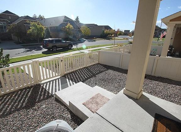Beautiful 3 bedroom townhome! The entrance features a nice covered porch and white fence around the small yard. Inside is an open floor plan with engineered hardwoods and new carpet on the main level and a family room with gas fireplace and built-ins. The eat-in kitchen features 42" maple cabinets, slab granite countertops, stainless steel appliances and an island with breakfast bar! Upstairs are both bedrooms and the laundry! The master features a large 4 piece bath and walk-in closet. The 2 secondary beds are nice size and share access to the secondary full bath. 2 car attached garage with built in loft for storage! Fantastic location walking distance from local pond and trails. Just minutes from the Westwoods Shopping Center with restaurants and shops and close to open space and West Woods Golf Course for some outdoor fun!