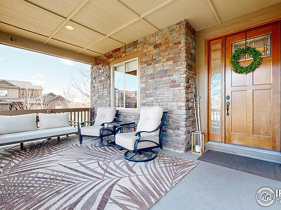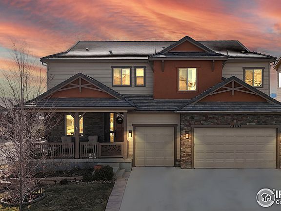 Welcome to 15955 Humboldt Peak Dr, a stunning corner lot home in Broomfield, offering breathtaking mountain views and mature landscaping. This meticulously crafted home combines style and functionality with a thoughtfully designed layout, perfect for entertaining. The gourmet kitchen features slab granite countertops, subway tile backsplash, KitchenAid stainless steel appliances, and a large island with seating. Additional highlights include a walk-in pantry, a butler's pantry, and a cozy breakfast nook. A mudroom with custom-built-ins off the 3-car garage provides organization with a convenient drop zone. The main floor includes a study with barn doors and views. Cozy up in the family room with a Cosmo gas fireplace, great for relaxing or hosting guests. The formal dining room and a keeping room with soaring ceilings offer ample space for gatherings, while the keeping room flows into a covered deck with mountain views, perfect for indoor/outdoor entertaining. A built-in desk with shiplap accents adds charm and functionality. Upstairs, the primary suite boasts a gridded ceiling, mountain views, and a spa-like 4-piece en-suite bath with dual vanities, large shower, and custom his-and-her walk-in closets. A guest suite with a shiplap accent wall and private en-suite bath, plus a loft, laundry room, two additional bedrooms, and another full bathroom complete the upper level. The finished walk-out basement is an entertainer's dream, with a wet bar featuring a beverage fridge, a flex space with views, a gaming area, built-in storage, a bedroom, and a 3/4 bath. The large backyard backs to a walking trail and offers a covered patio with sunshades, hot tub, gas fire pit, and gas grill. A custom gate on both the front and back porches adds convenience. Fresh exterior paint was applied in 2024! Community amenities include parks, walking trails, and a pool/clubhouse. Located with easy access to Boulder, DIA, & Denver, this home is the perfect blend of luxury and convenience.