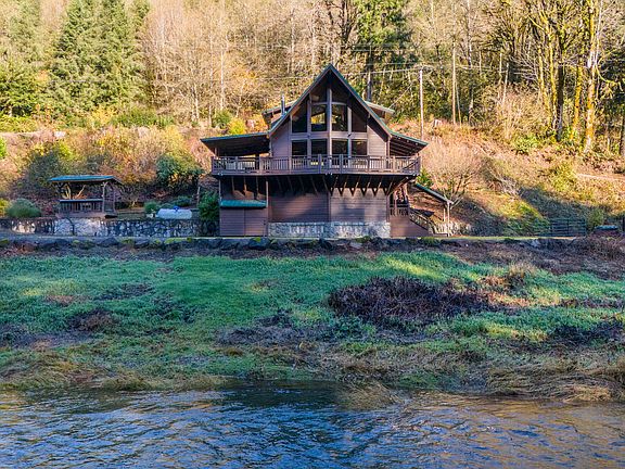 Fisherman's oasis! This Riverfront cabin has everything you need. Amazing riverfront views from the living, kitchen, dining room and master bedroom/loft area. 2 bed, 2 bath. Gorgeous covered, outdoor kitchen for entertaining. basement for extra storage and attached garage for parking your boat! Wrap-around deck, fish cleaning station and space to park your RV!
