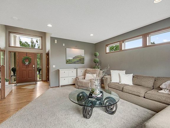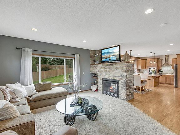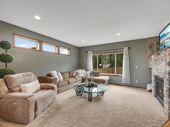 This home has everything you need! Nicely positioned on a half acre lot providing great privacy and views. Open concept kitchen has new pendants, backsplash and stainless appliances. Open dining space and cool 2-sided fireplace flows to the maintenance free deck and out to a fully fenced yard. Front office with tons of natural light, stylish powder room for guests. 3 bedrooms up including full owner's suite plus laundry. Lower level 4th bedroom or gym. Custom stacked stone finish in the lower level brings cool character along with the dry bar and wine holder. Oversize garage plus additional concrete pad and new shed. Coveted Lakeville Schools, easy access to central highways. Hurry on in!