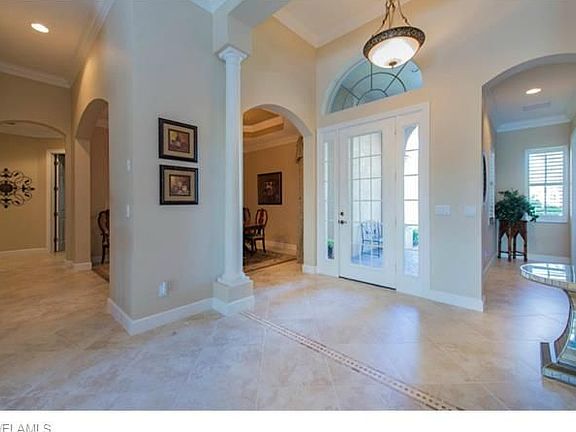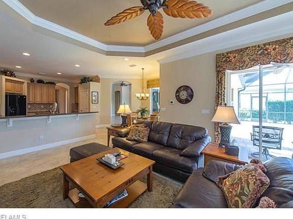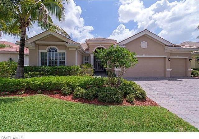 H.9312 - Highly upgraded, popular 3193 sq. ft. ESTRELLA plan w/4 bedrooms plus den/office, 3 CAR garage, huge/extended screened lanai with 2 separate covered areas in the back and another in the front with brick pavers and a fabulous custom pool/spa w/autofill feature and planter! Pre-plumbed and wired lanai for future outdoor kitchen. Desirable cul de sac, beautiful premium lake lot. Other features include electric or accordian shutters on every window and door, tile throughout living areas, except for upgraded carpet in bedrooms and wood den floors. Granite kitchen, crown molding throughout, custom paint, expansive 10 and 11 ft. volume ceilings, large 8 ft. doors throughout, surround sound pre wire, morning room with mitered glass window overlooking your beautiful pool/spa and lake! Delasol is a low density private gated community w/only 286 single family homes, on 147 acres, 62 of which are set aside for preserves, lakes & green spaces. Enjoy the clubhouse, pool, spa, lighted tennis courts, fitness ctr, basketball & play areas. Desirable North Naples location, situated off the Livingston Rd. corridor, just minutes to famous Naples beaches, shops & restaurants. Low fees!