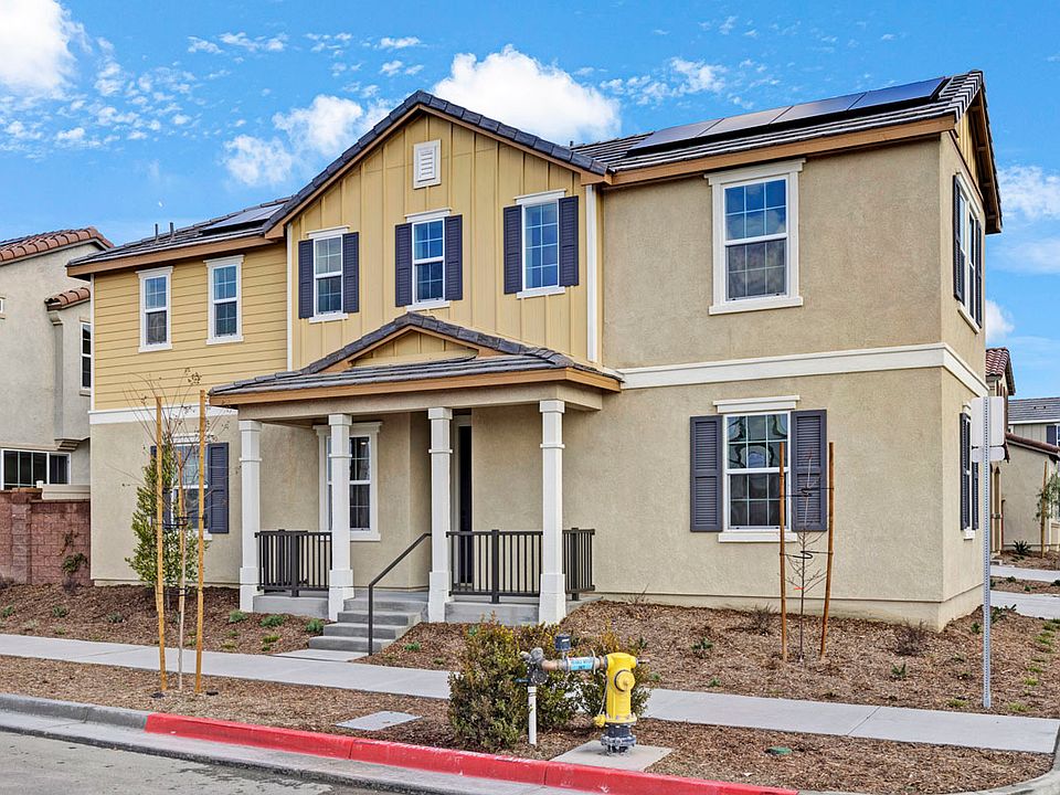 This beautifully designed, two-story home features a first-floor bedroom with full bath, ideal for overnight guests. The stylish kitchen boasts Shaker-style cabinets, granite countertops and stainless steel appliances. An open stair rail leads to four upstairs bedrooms. The primary suite showcases a large walk-in closet and spa-like bath with dual-sink vanity, tub and separate shower. Energy-efficient features including LED lighting fixtures, water-conserving faucets and a solar energy system may help reduce monthly utility bills. Current time frames before closing may be longer than originally anticipated. See sales counselor for approximate timing required for move-in ready homes.