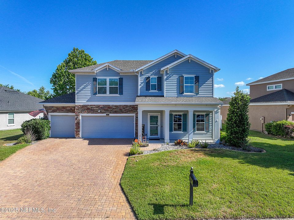 Check out this SPACIOUS 5 bedroom, 4 bathroom home with a whopping 3455sqft located in the desirable Yellow Bluff Landing! The open floorplan provides ample space to host all the family or friends and a beautiful gourmet kitchen equipped with double ovens, 42-inch cabinets, granite counter tops, and stainless steel appliances. The primary and 2nd bedroom are located on the 1st floor, with the remaining three bedrooms on the 2nd level. Need storage?! This home has all you could ask for! The three car garage (equipped with EV charging) provides ample storage for all the cars, trucks, and toys! Enjoy the peaceful fenced in backyard or scootch on down to the exclusive amenity center including a resort-style pool, children's splash park with slides and fountains, fitness center, lighted tennis courts, basketball courts, soccer field, sand volleyball court, and a clubhouse with a kitchen and expansive covered porch featuring a fireplace. Experience Florida living at an affordable price in this vibrant community. Don't miss the opportunity to make this beautiful home yours!