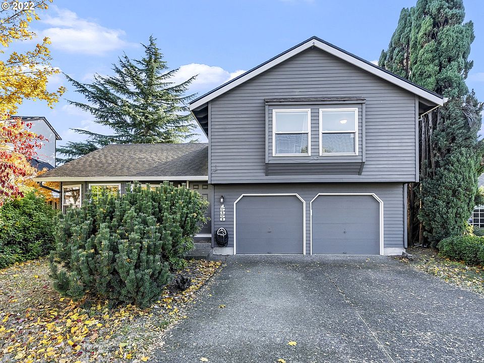 Light, bright, and move-in ready near Oakhills! Greeted by abundant natural light & soaring vaulted ceilings, this traditional concept features a spacious living room w/ slider to a large backyard. Relax in the family room w/ wood fireplace. Primary suite includes coffered ceilings, double vanity, & walk-in closet. Entertain on the back deck & covered-patio, w/ room to garden. Near Intel, Nike, shopping, and easy access to freeway!