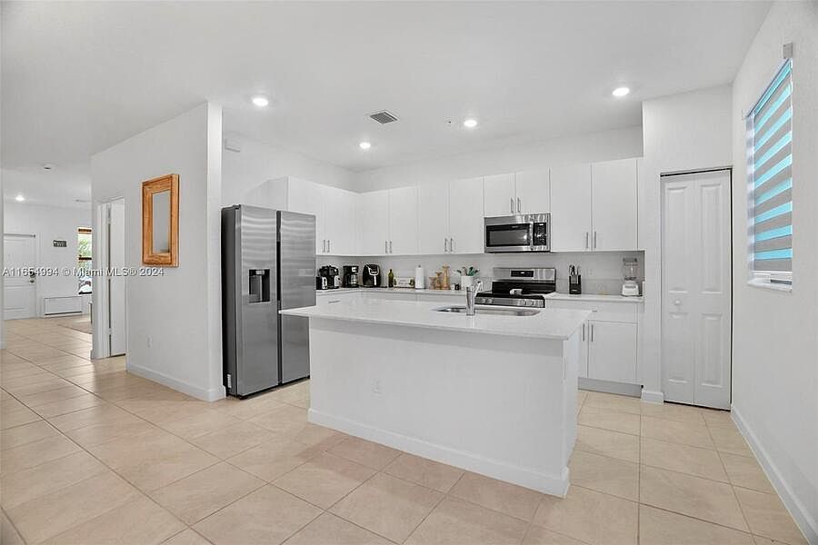 New construction built in 2023 in the Sunset Pines Community. This modern smart townhome offers 3 bedrooms and 2.5 baths, combining contemporary style with the latest Ring smart home technology. The tiled first floor features a kitchen equipped with stainless steel appliances, quartz countertops, a large island, and premium cabinetry. Additional highlights include a tankless water heater, new washer and dryer, blinds on all windows, and a private fenced backyard. The home includes a garage for 1 car and parking for 2 more in the driveway. Located within walking distance of the clubhouse, community pool, and playground, this home is situated in a desirable family-friendly neighborhood with excellent schools, next to Publix, restaurants, and shops. COURTESY OF United Realty Group Inc.