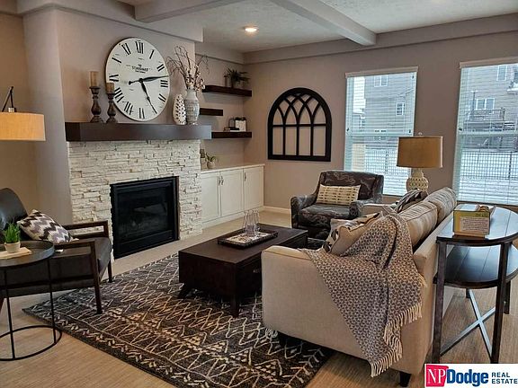 Welcome Home! Awesome home with many extras! Stone columns on front porch. Upgraded carpet on main level. Beautiful wood floors. Fireplace with floating shelving and built-in cabinets in living room. Flex room, kitchen island, walk-in pantry, solid surfaces in kitchen, drop zone, laundry. Owner's suite with dual sinks, walk-in shower and closet. Blinds on all windows. All bedrooms have walk-in closets and ceiling fans. Upper level baths and laundry have LVT flooring. A must see and BUY!