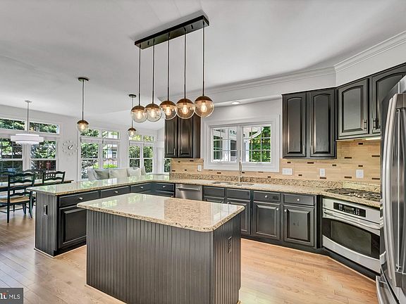 Stunning home in the coveted Manors at Wolf Trap, nestled on a peaceful cul-de-sac with a private wooded 0.35 acre lot. The home boasts a bright and open interior perfect for entertaining, featuring 6 bedrooms, 4.5 bathrooms, and offering 5,557 sq ft of living space over three levels. The layout is ideal for large or small gatherings, including a grand two-story entrance hall, formal dining and living rooms, and a family room with a cozy fireplace. The kitchen shines with its central island, granite counters, custom tile backsplash, walk-in pantry, and a breakfast nook beside a sunroom with vaulted ceiling. The main level also boasts a home office, a mudroom/laundry, and a half bath. The owner’s suite is a retreat with its own fireplace, sitting area, dual walk-in closets, and an spa-like bathroom featuring a soaking tub and a walk-in shower enclosed in frameless glass. The upper level also has a walk-in linen closet and four additional bedrooms, connected by two Jack and Jill baths. The finished walk-out lower level offers a recreation room, home gym, full bath, and the sixth bedroom. Private park-like exterior, complete with a spacious low maintenance Trex deck and a beautifully landscaped, fenced yard that backs to protected woods. Conveniently located a short drive from Vienna's downtown, Tysons, Wolf Trap National Park for the Performing Arts, major commuting routes, and the Metro, within the Westbriar/Kilmer/Marshall pyramid.