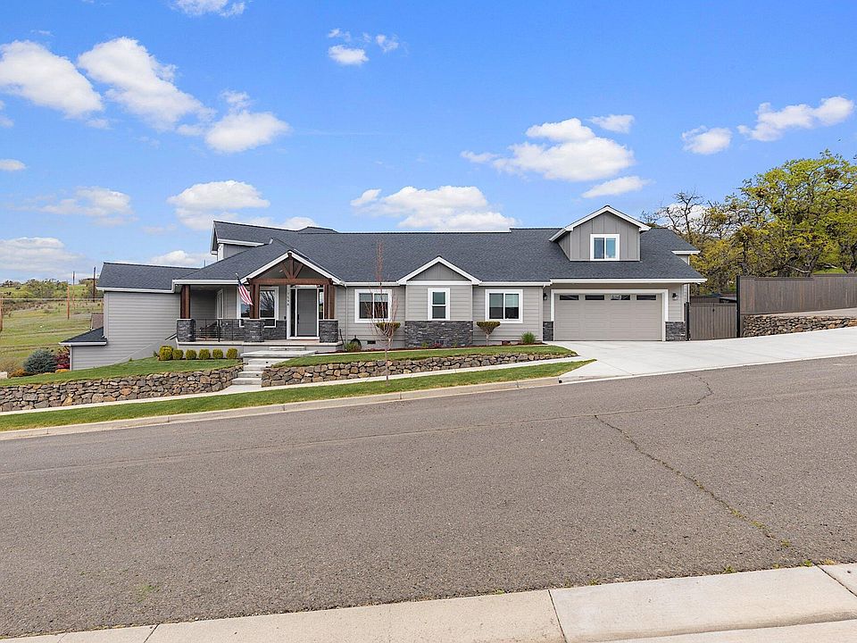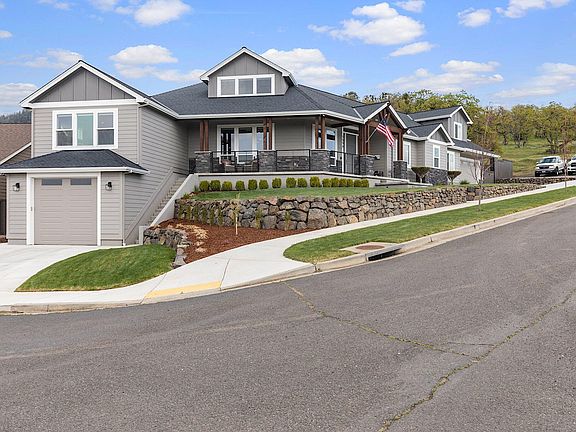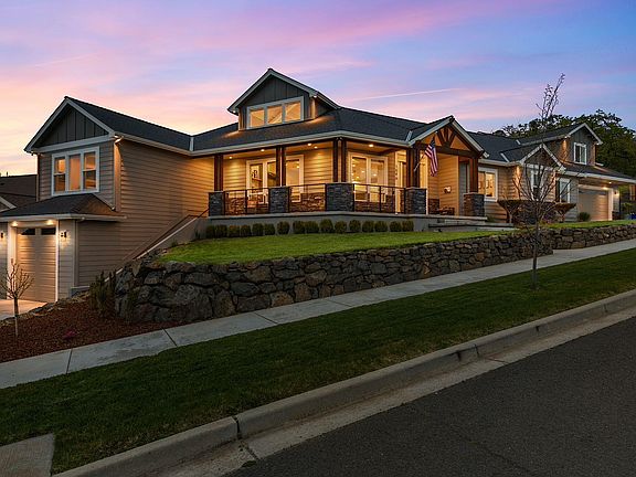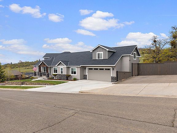 This stunning custom home situated in the desirable East Medford Hills boasts 3844 Sq/Ft with 5 bedrooms and 3.5 baths. Built in 2020, the thoughtful design showcases incredible valley views and unforgettable evening sunsets. Situated on a corner lot with generous parking, an oversized 2 car main garage and additional 16'x38' garage on lower level. The use of structural steel allows large spans to maximize the spacious layout with 11' ceilings featuring a 23' hickory tongue and groove vault. The kitchen boasts an oversized island with Quartzite slab, Jenn-Air appliances, abundant cabinets, pantry and granite countertops. The main level split floor plan includes 3 bedrooms and a master bedroom with generous ensuite and walk-in closet. Upstairs includes a bedroom, full bathroom and living room. Additional features include two dual fuel HVAC systems, hardwood floors, custom tile work, and a private backyard with gas firepit. With incredible attention to detail, this is a must see!