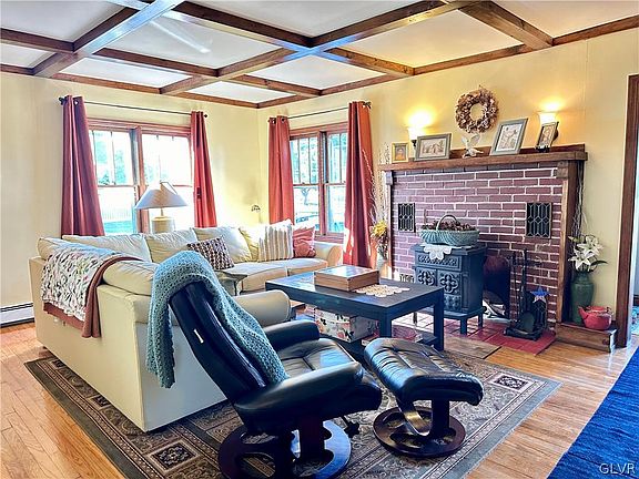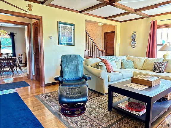 Discover the perfect blend of charm and whimsy in this captivating Cape Cod residence. The inviting living room features a beautifully coffered ceiling, numerous handcrafted wood accents, and a cozy brick hearth with a wood stove insert. The formal dining room is adorned with built-in bookshelves, creating a perfect space for cherished collections. The eat-in kitchen boasts a stylish island with seating, ideal for casual meals and entertaining.The first level offers two comfortable bedrooms and a full bathroom, while the second level unveils a generously spacious bedroom with an en-suite full bathroom, providing a private retreat. Nestled on just under half an acre, this property includes a screened back porch and a deck, perfect for enjoying the serene outdoors. Additional features include an attached one-car garage and a large storage shed. Located directly across from the Mount Bethel recreational field, this home offers stunning panoramic views of the Delaware Water Gap. Plus, it's a mere 2-minute drive from I-80, ensuring convenient commuting. Don't miss the opportunity to make this delightful residence your own!