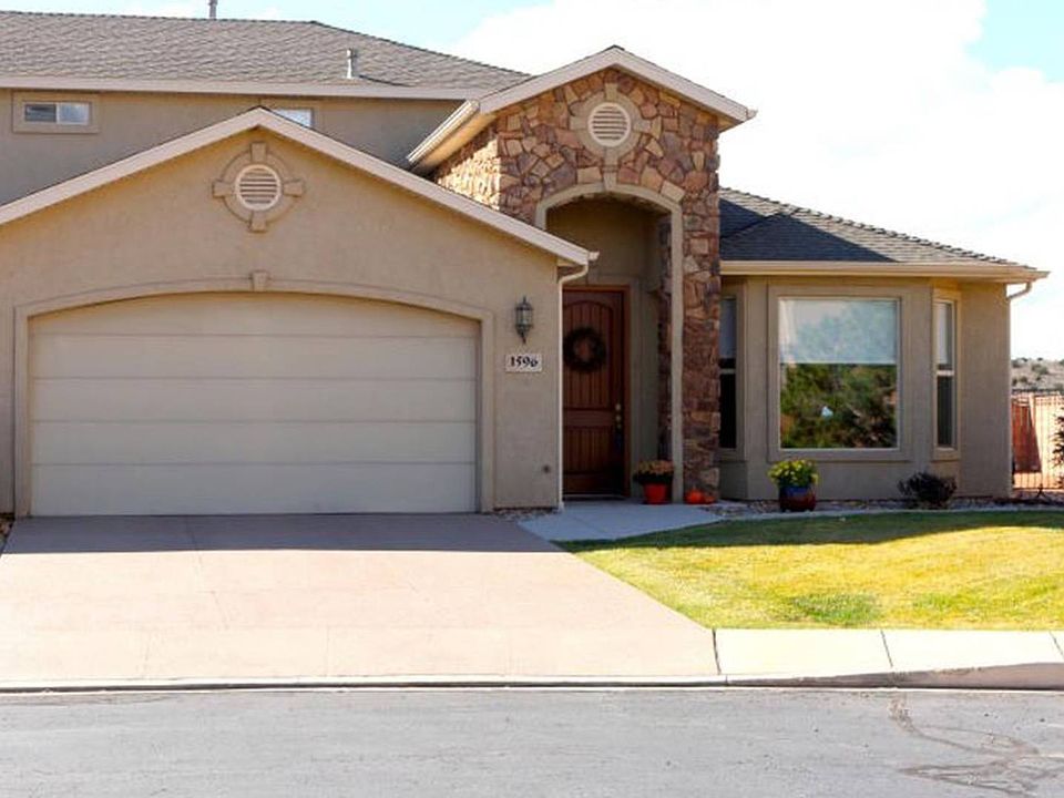Fantastic home in a great location with stunning views of the surrounding Cedar mountains. Fantastic master suite on the main level includes a soaking tub and walk in closet. Home has open Concept with a gas fireplace in the living room and updated kitchen with corian countertops, and new stainless steel appliances.. The kitchen extends to a covered outdoor patio and a beautiful, fully landscaped yard with automatic sprinkler system.