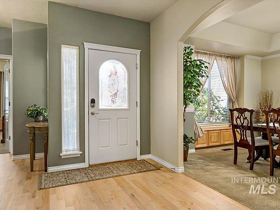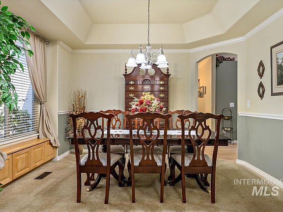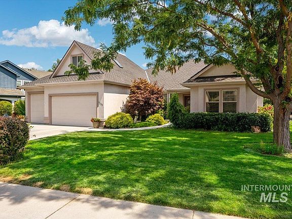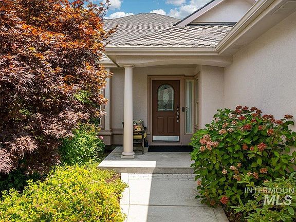 Custom home offers a perfect blend of comfort & elegance in the coveted River District in Eagle! A gourmet kitchen is a culinary delight, featuring a gas cooktop, beverage fridge, newer refrigerator & new quartz countertops from Italy! Transom windows allow natural light to flood the space, while the eating area & formal dining room provide versatile options for meals & entertaining. The vaulted great room, adorned w/a granite fireplace & large windows, creates a spacious, inviting atmosphere. The home boasts 2 suites, an office, & a bonus room w/hobby space, perfect for various lifestyle needs. Practical features include a laundry room w/utility sink & folding counter, as well as bench seats w/storage. East-facing backyard offers a covered patio with a gas hookup, beautiful mature landscaping for privacy, garden space, & area 4 possible dog run. It is also wired for a hot tub. The oversized 3 car garage has power for car charging. Lots of Community amenities & Greenbelt access. Click TOURLINK for more info