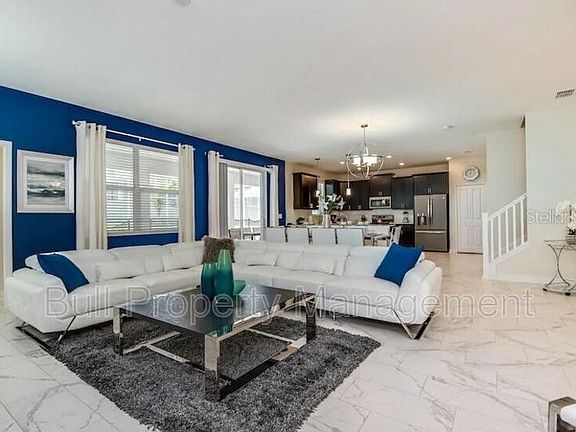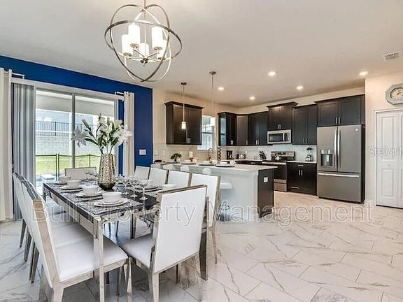 This is your ideal opportunity to rent a beautiful, spacious and fully furnished house in Champions Gate! This property features all the comforts of home and more! You get to enjoy all the amenities of the resort such as the lazy river, splash pool , 2 other large pools, tennis courts, fully equipped exercise room, on-site cinema, arcade games, and family restaurant. This comfortable 6 bedrooms, 6 bathrooms executive home sleeps up to 16 comfortably,. The living area offers plenty of space for all to spread out. For family get-togethers, the dining area is ideal to share a meal around the elegant dining table or have a quick meal at the kitchen breakfast bar. You can also enjoy a game of pool in the games room, or the adults can all watch a movie or a sports game together in the spacious lounge, you can take a dip in your very own Private Pool and Spa, and if you are a nature-lover, you can make the most of the famous Florida sunshine at any time during the day as the pool is south facing! An ideal place to sit and relax on the sun loungers or have an outdoor meal around the patio table by the pool.