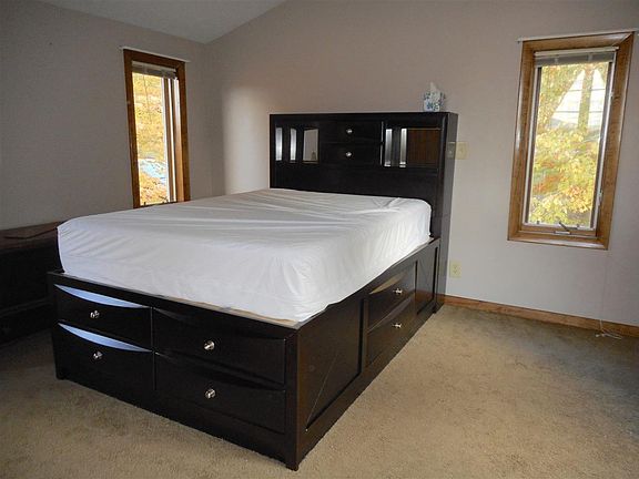 A little peace of mind during these trying times! This super cute chalet style modified A-frame for those seeking a smaller footprint. At 676 sq ft, this 1998 house was built before the current tiny home trend. A portion of the home has been squared off to give additional space to the kitchen and bedroom. Enter the home into the eat-in kitchen. With this area open to the living space, the cook is free to socialize with family and friends. The oversized sliding doors and windows at the peak of the roof give you that chalet style wall of windows feel, which let in natural light. Open the slider to the large front deck and you now have an indoor/outdoor gathering. PLEASE APPLY THROUGH THE ZILLOW: The lease length of this pet friendly unit is actually quite flexible, it varies from month to month, 3 months, 6 months and up to a year (which can also be extended further). Utilities included in the rent are Water, Heat, Trash, Cable, Electricity and Strong Internet (Xfinity High Speed Internet Service with an Average speed of about 36Mbps as recently tested). Please apply through the listing.