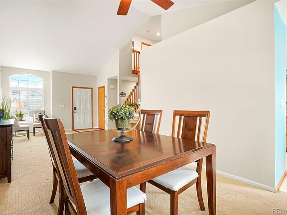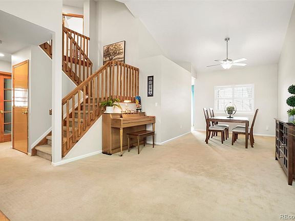 Fantastic opportunity to live in the highly sought after Stonegate community offering the best amenities in all of Parker including 2 country club style pools, 2 clubhouses, 2 sets of tennis courts, multiple parks and miles of trails. As one of the more affordable homes in the neighborhood, this 2 story charmer offers big bang for your buck! With 5 bedrooms & 4 full baths this home provides great versatility to accommodate a large family, multiple home offices or a multitude of other needs. From the moment you enter the front door you will be impressed by the soaring 2 story ceilings & the flood of natural light in the front living/dining rooms. These rooms flow seamlessly into the kitchen which is an inviting entertaining space for family & friends. The open concept kitchen features newer black stainless appliances, large pantry & functional breakfast nook overlooking the inviting family room with ambient fireplace. A rare main floor bedroom flanked by a remodeled 3/4 bath creates a unique opportunity for multigenerational living or a private home office. Upstairs you will find a separate primary suite with vaulted ceilings, his/hers closets & ensuite 5 piece bath along with 2 large secondary bedrooms & another full bathroom with updated tile shower. The finished basement provides great space to truly make your own. There is a 5th bedroom option, a cozy living area that would be a great theater room/gaming area, a 3/4 bathroom, and loads of storage space. The large corner lot is ideal for spending time outdoors offering one of the bigger backyards in the neighborhood and the added safety and privacy of a cul-de-sac in front. Fantastic location just off of I-25 and E-470 for easy access to DTC, Downtown, DIA & Park Meadows; walking distance to schools, coffee shops & restaurants. Home improvements include plantation shutters, all new windows throughout, Newer HVAC system, New driveway/front walkway, New backyard patio, & upgraded can lighting in kitchen.