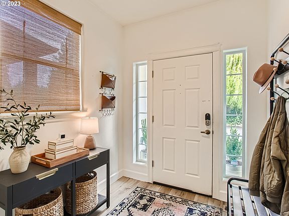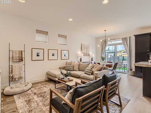 Light and bright 3 bedroom, 2.5 bath townhome on quiet cul-de-sac in close in Beaverton. No HOA! Great room kitchen, living and dining room floor plan with slider to paver patio and newly landscaped fenced backyard. Backyard is perfect for entertaining. Newer luxury vinyl tile throughout main floor and newer carpet throughout upstairs. Kitchen has black stainless steel Smart Samsung appliances. All bedrooms on upstairs with laundry. Primary has walk-in closet and ensuite bath with a double vanity. Attached garage and ample storage throughout. Close to Nike, trails and parks, and all the shops and restaurants that Old Downtown Beaverton has to offer.