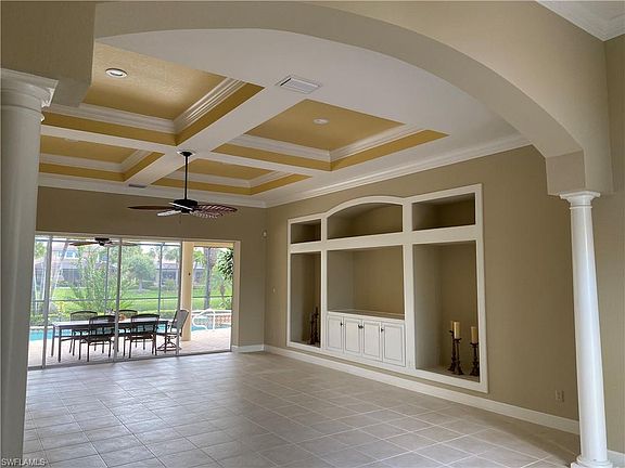 This the largest floor plan available in DELASOL Fabulous open floor plan home, boasts Greatroom 4 Bedrms, Office/Den, 3Full Baths, 2 1/2 CAR GARAGE, Screened lanai Pool & Spa, approx. 3021 sq ft under air. Situated on a premium Eastern lake lot.. Tray ceilings in the family room, dining room and master bedroom create a rich and elegant atmosphere. Kitchen offers center island with prep sink, tile backsplash & white kitchen cabinets and Electric shutters on lanai.This is truly a fantastic home with all the luxuries of living in this sensational North Naples gated community. Delasol is a popular low density private gated community w/ sidewalks on both sides of the street, only 271 homes on 147 acres, 62 of which are set aside for preserves, lakes & green spaces. This financially sound guard-gated community features tennis courts, pickleball, a beautiful playground, basketball court, clubhouse, pool and spa, and gym! It is also a very active community with their own social committee, pickleball teams and events! This and more is all included in your low HOA dues! Close to great schools, parks, shops & restaurants. Just 3 miles to world-class Naples beaches.