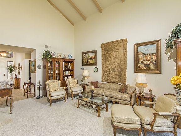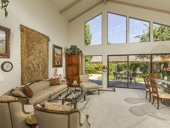 Fabulous single story home w/incredible pvt 7,800 sq. ft. lot on quiet cul-de-sac in Whispering Palms, Rancho Santa Fe. Dramatic & charming home w/ soaring ceilings, windows from floor to ceiling in living & dining room bathed in natural light. Lovely kitchen w/ granite countertops overlooks cozy family room w/fireplace, updated bathrooms, shutters in most rooms,water softner & so much more. Enjoy wonderful breezes & indoor-outdoor living! Stroll to Morgan Run Country Club & golf course