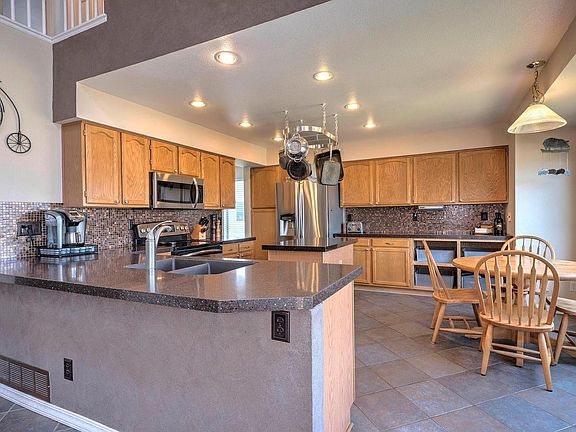Wonderful home in Thornton's Hunters Glen neighborhood.Quiet cul de sac home backs to the new 16th hole.Home is positioned out of drive fairway.Beautiful Mtn and Golf course views.Open concept floor plan boasts lots of natural light.Formal living/dining combination provides great space for entertaining.Spacious kitchen with pantry and great room with vaulted ceilings/skylights.Main floor study or bedroom and half bath.Large master bedroom vaulted ceilings w/ 5 piece master bath, 2 bedrooms and full bath round out the upstairs.Nicely finished entertaining walk out basement,wet bar,tv area/bedroom and 3/4 bath.Great deck and backyard for enjoying the sunsets over the Rockies.Brand new furnace and central air. *Seller will consider an allowance for any cosmetic repairs of Buyers choosing!