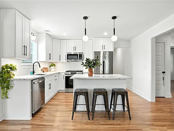 Be the first to live in this 3BR/2BA East Atlanta home after it's complete renovation by the M2REST team reimagined top to bottom with all-new plumbing, electrical, HVAC, and windows. A deep, partially fenced front yard sets a welcoming tone for kids, pets, gardening, or simply spreading out. The covered front porch leads into a bright, open floor plan designed for modern living. At the heart of the home, a brand-new kitchen features stainless appliances, a generous island for casual dining or Sunday pancakes, and great sight lines to the spacious living room. A separate dining area adds effortless flow for weeknight dinners or hosting friends. The bedroom layout is flexible: a large guest room suits a roommate or long-term visitors; a second guest room works perfectly as a home office or third bedroom. The private primary suite impresses with a large closet and a sleek ensuite bath showcasing dual vanities and an oversized shower. A second full bath brand new and thoughtfully finished includes a soaking tub. Location seals the deal: stroll to East Atlanta Village for coffee, dining, and nightlife; walk to highly ranked Burgess Peterson Elementary; and hop onto I-20 in minutes for easy access around the city. Gorgeous, turn-key, and ready for its very first tenant this home delivers the style you want and the convenience you need. Welcome Home!