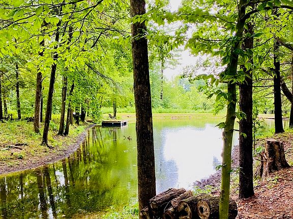 Your opportunity to own 7.59 Wooded Acres of peace & tranquility. Located in the bucolic countryside. All the hard work is done. Excavating and clearing. Electrical service, private well, storage barn, camping sites, dock, trails, picnic area. Old growth trees as well as abounding flora & fauna. Bring your RV, tents or your building plans! Electrical service has been run to 2 sites. Water is available at 2 locations. Water line was installed with anticipated future expansion and development on opposite side of pond. 8'7" Angler fishing boat with battery and trolling motor are included. Airstream in picture is not included, for picture purposes only!