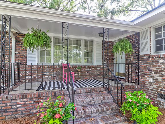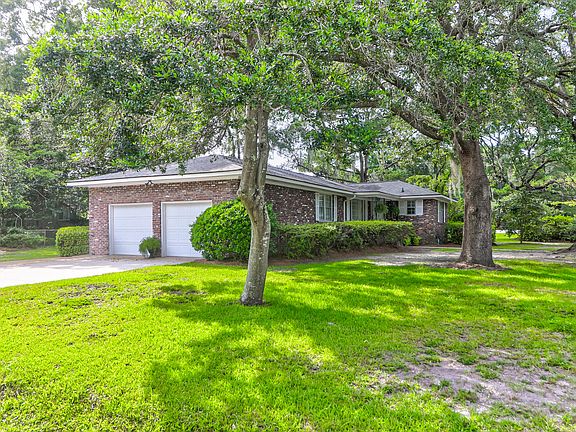 Welcome to this charming brick ranch only 10 minutes from downtown Charleston. Enjoy a big shady corner lot with mature oak trees and fenced-in yard. Original hardwood floors in the living room, dining room and all 3 bedrooms. Large sunroom with a gas fireplace gives you additional living space. The bricks on the house are from the Historic Charleston Round House. The interior of the home has been freshly painted and new ceiling fans. You can walk or bike to Publix, a gym or Charlestown Landing. The home has a extra-large double car garage with workbench and shelving plus an oversized driveway.