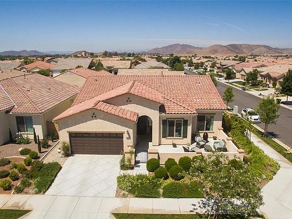 Retire in luxury at this 55+ Del Webb community for active seniors! This highly upgraded home rivals the community model homes and is ready for it's new owner. Situated on a corner lot this home has plenty to offer from it's gorgeous open and bright floor plan with vaulted ceilings throughout. The kitchen is fit for the chef in you and it boasts quartz granite counter tops, decorative glass tile back splash, ample kitchen island, stainless steel appliances and a walk in pantry with plenty of shelf space. Entertain your guest with your very own wet bar area complete with wine rack and sink. The family room is of ample size and is further accommodating for your guests and includes built in cabinets and fireplace. Other upgrades include Quartz Granite counters, elegant wood floors, crown molding, upgraded baseboards, designer ceiling fans, wood window sills, window blinds, 10 foot ceilings all through out and the list goes on an on! The backyard is very welcoming and the upgrades continue here as well with the covered California Room, decorative concrete patio and brick pavers, gorgeous artificial grass, rain gutters, block and vinyl fencing. Absolutely a stunning place to call home!