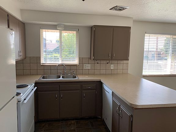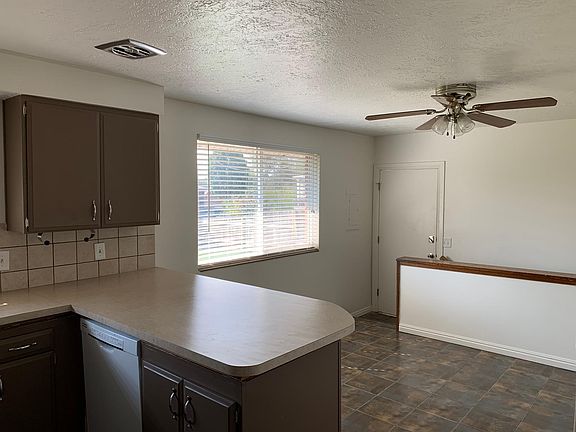 Brick home with 3 bedrooms upstairs and 2 downstairs. Fireplace, fenced back yard. 1 full bath upstairs with 1 3/4 in master bedroom. Evaporated cooler
